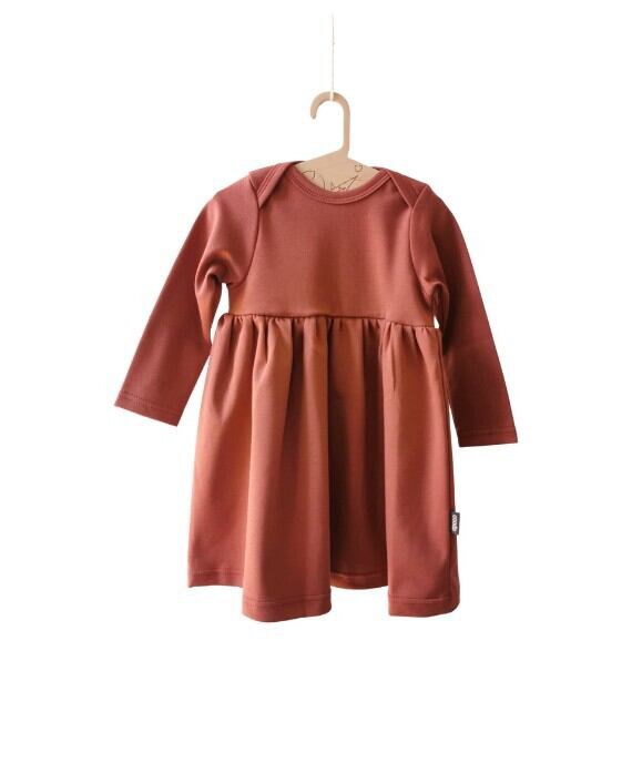 100%オーガニックコットンの布地が柔らかく、優しい着心地のワンピース。