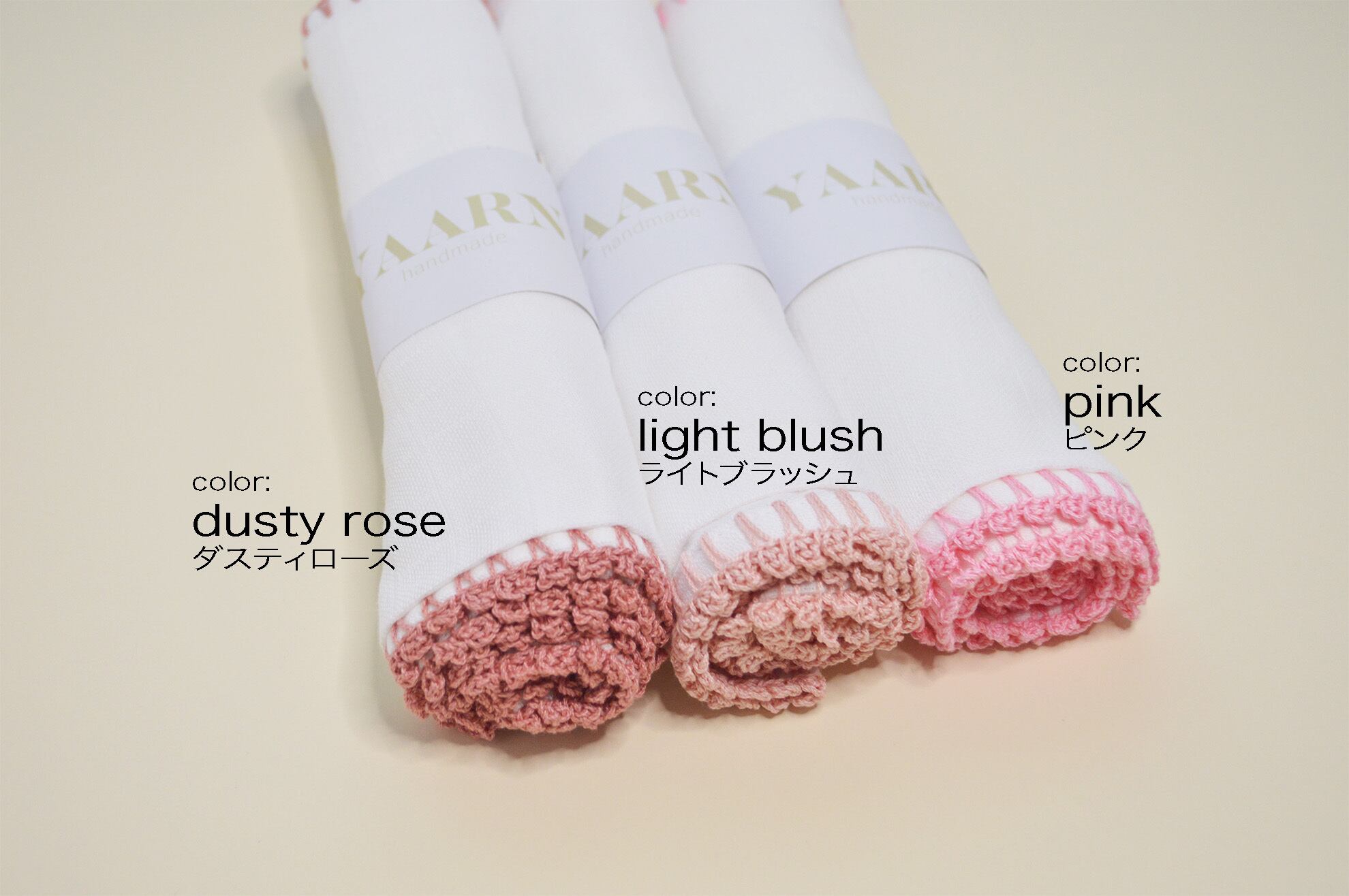 ※11枚目以降の画像は、編み地の確認のためブラッシュ色、ミント色を掲載しています。(共に取り扱いなし)