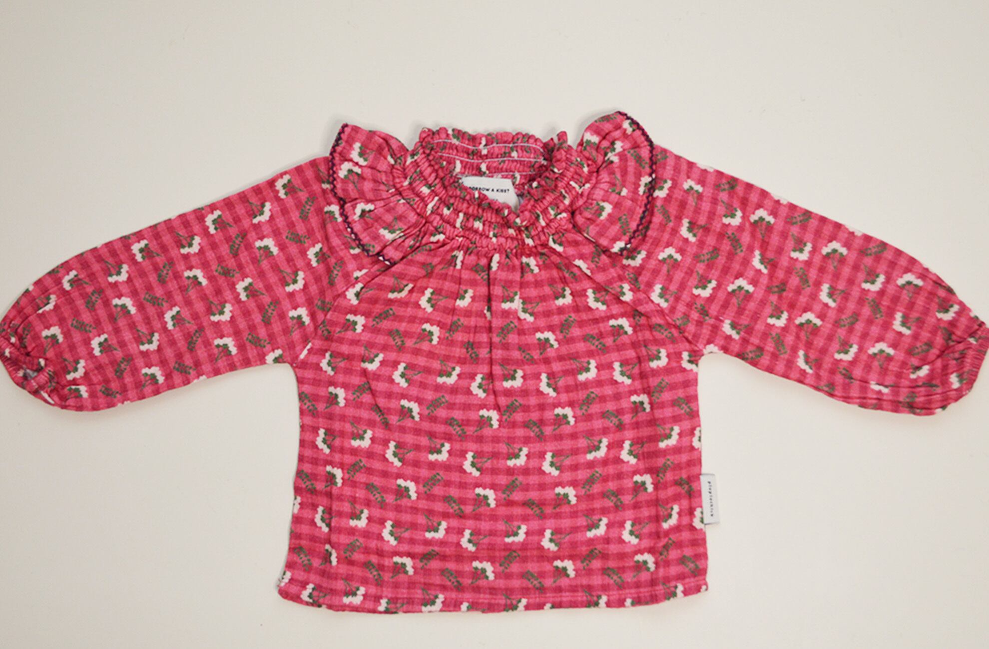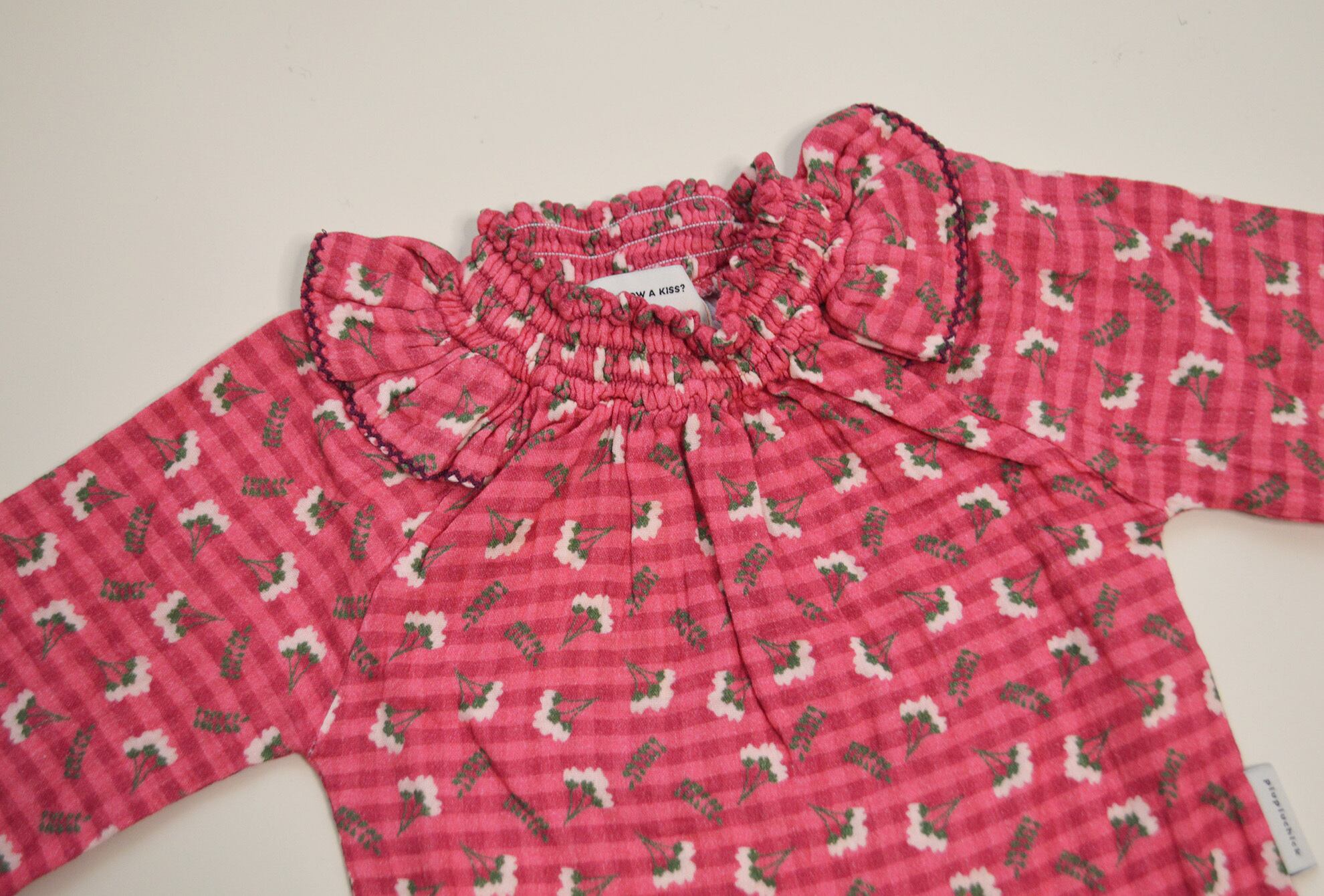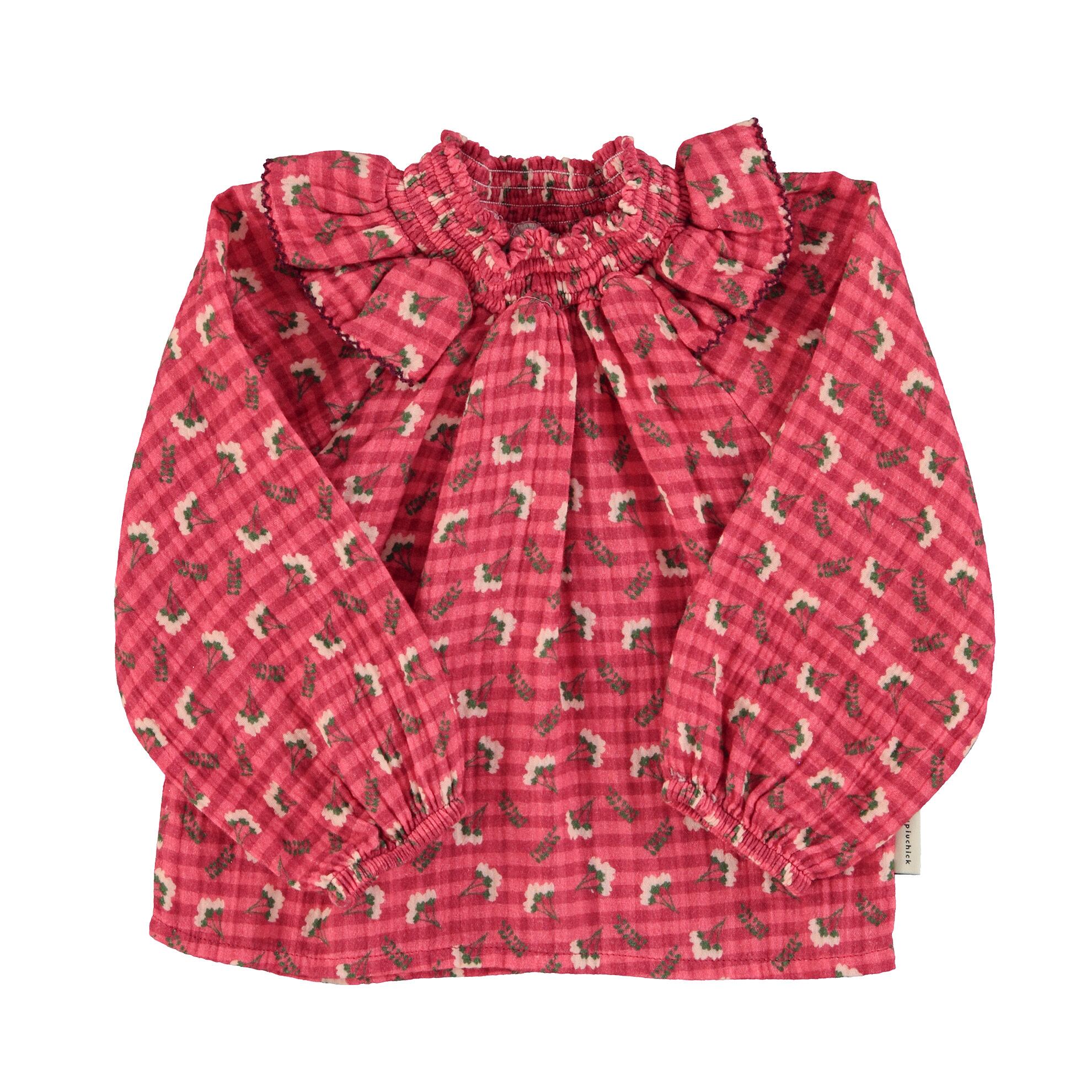 ・品名: blouse_ pink checkered with flowers 長袖ブラウス・ピンクチェック&フラワー