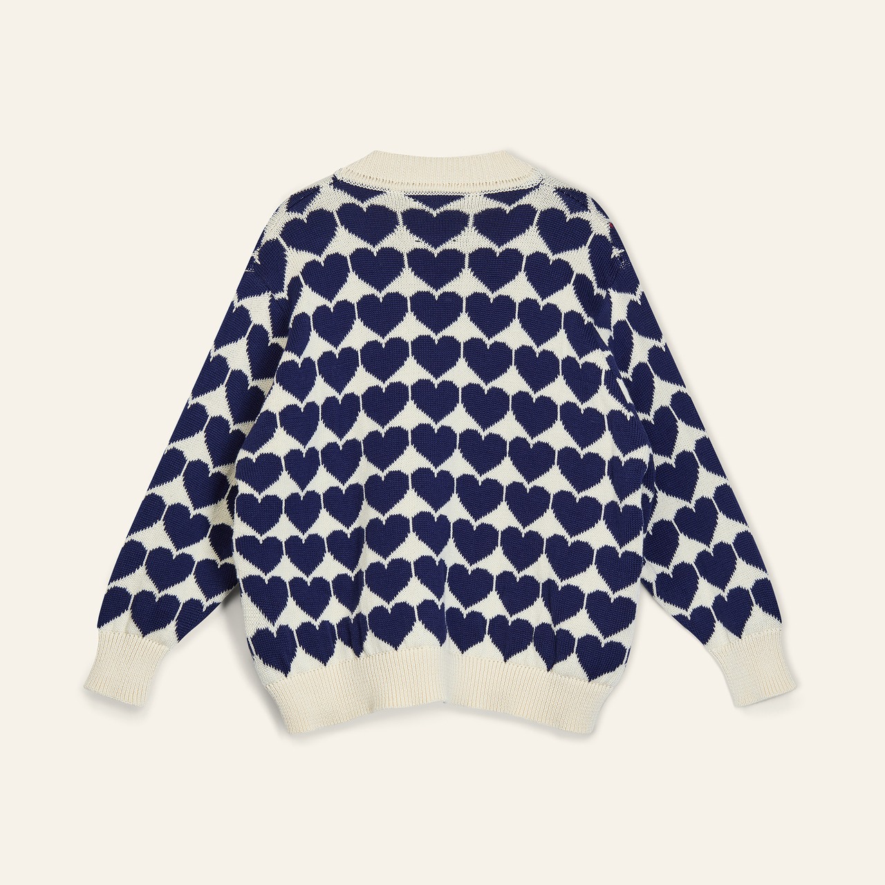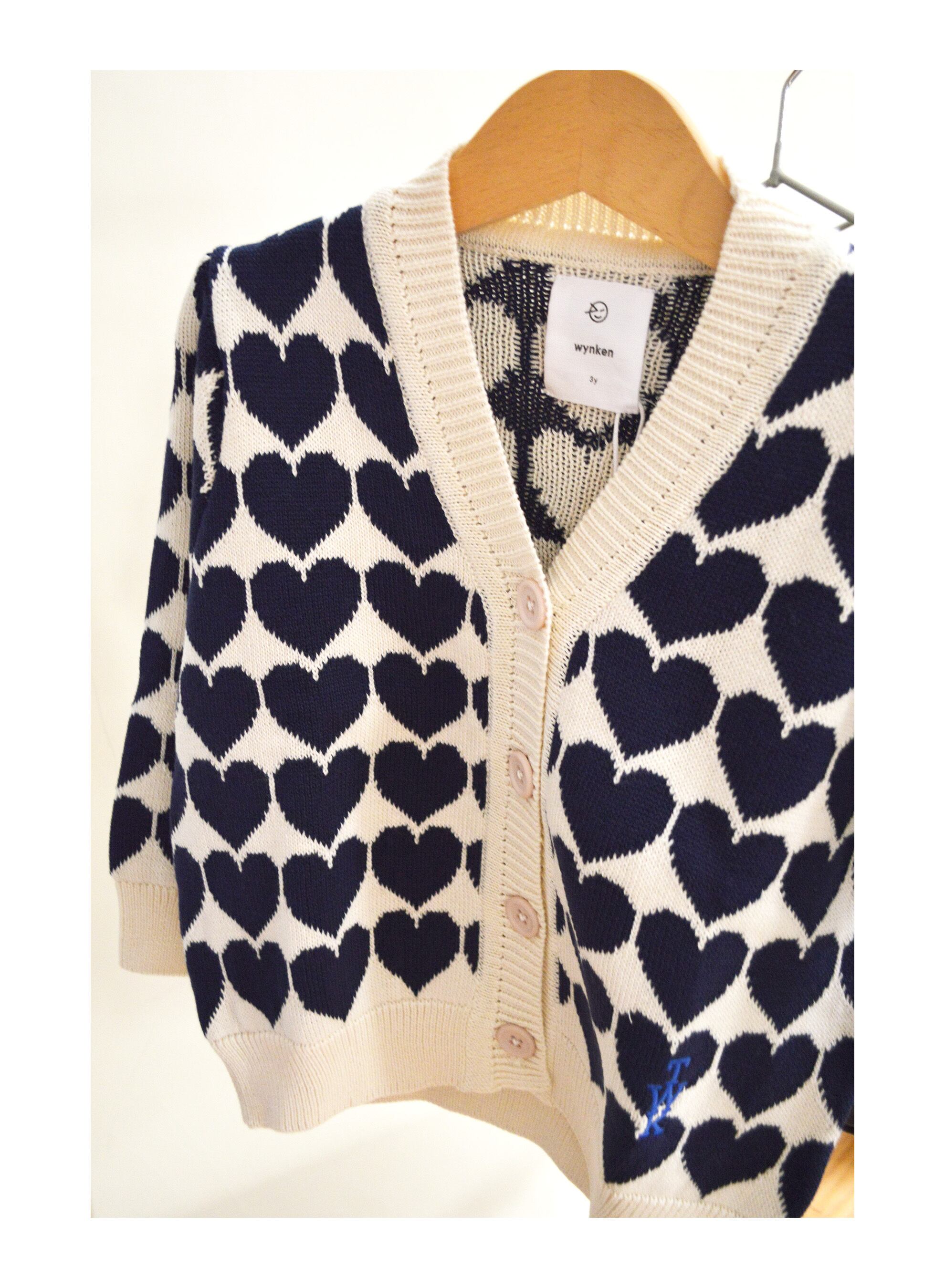 100%オーガニックコットンの大きめハート柄のニットカーディガン。
