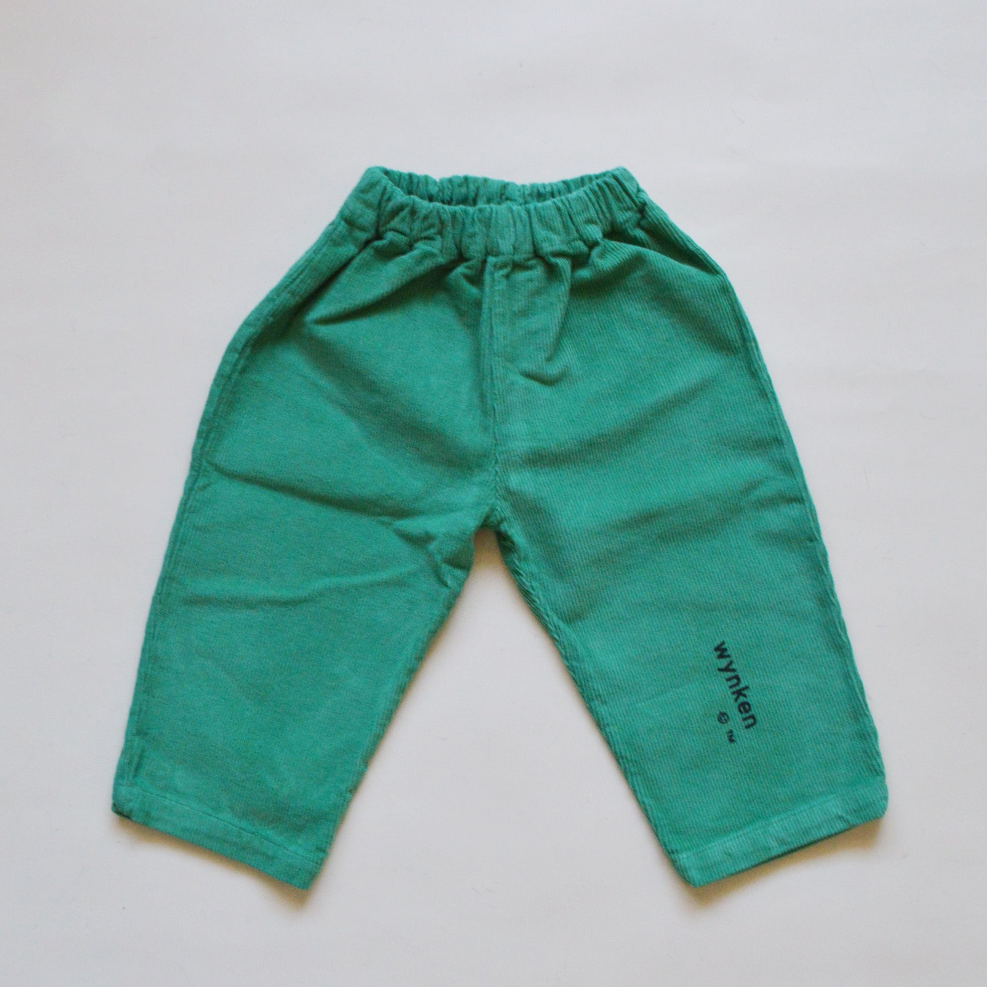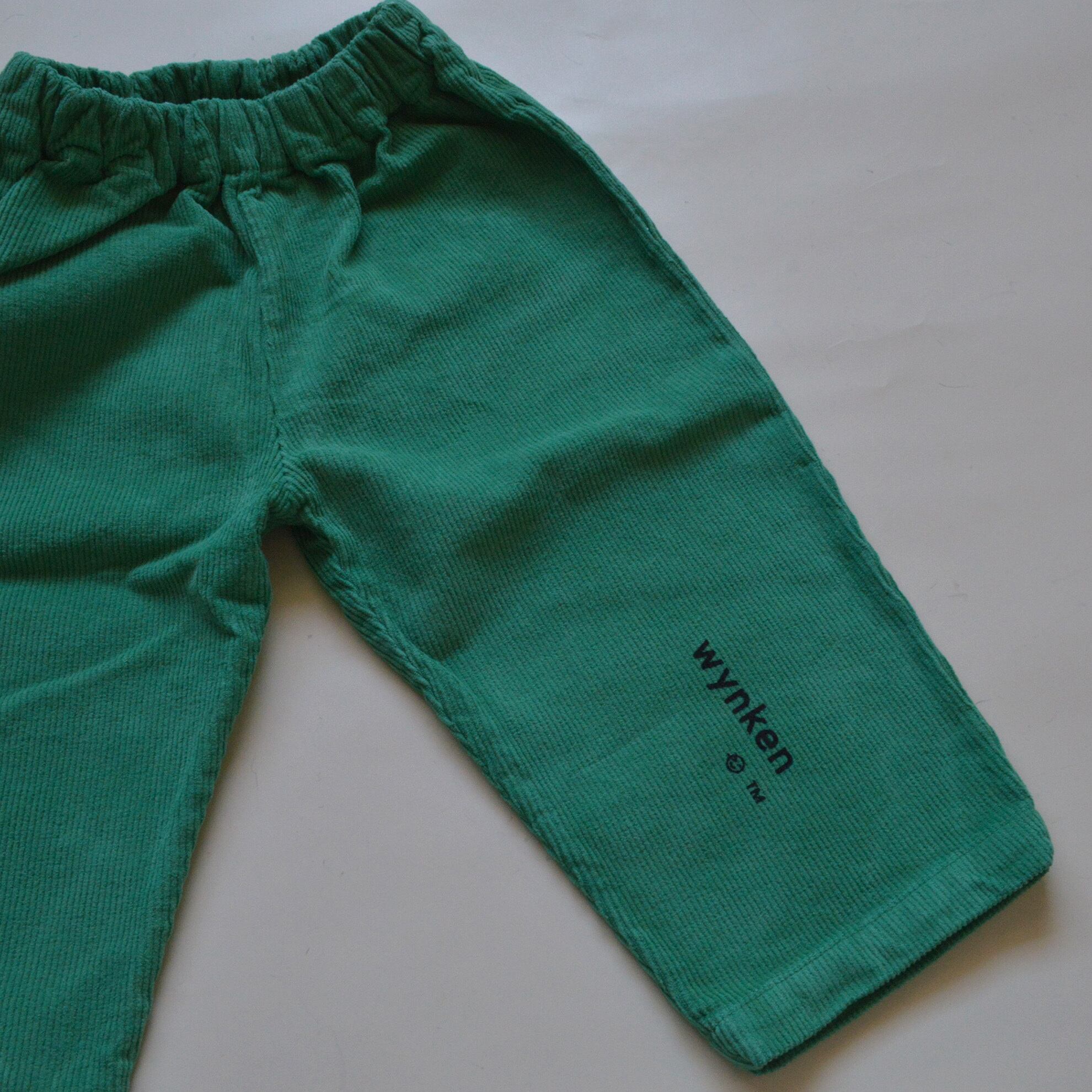 柔らかいゴムウエストに、サイドポケットあり。裾あたりにはWYNKENロゴのニコちゃんプリント。