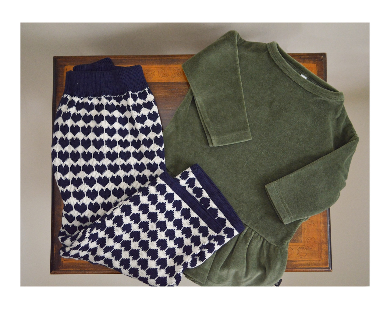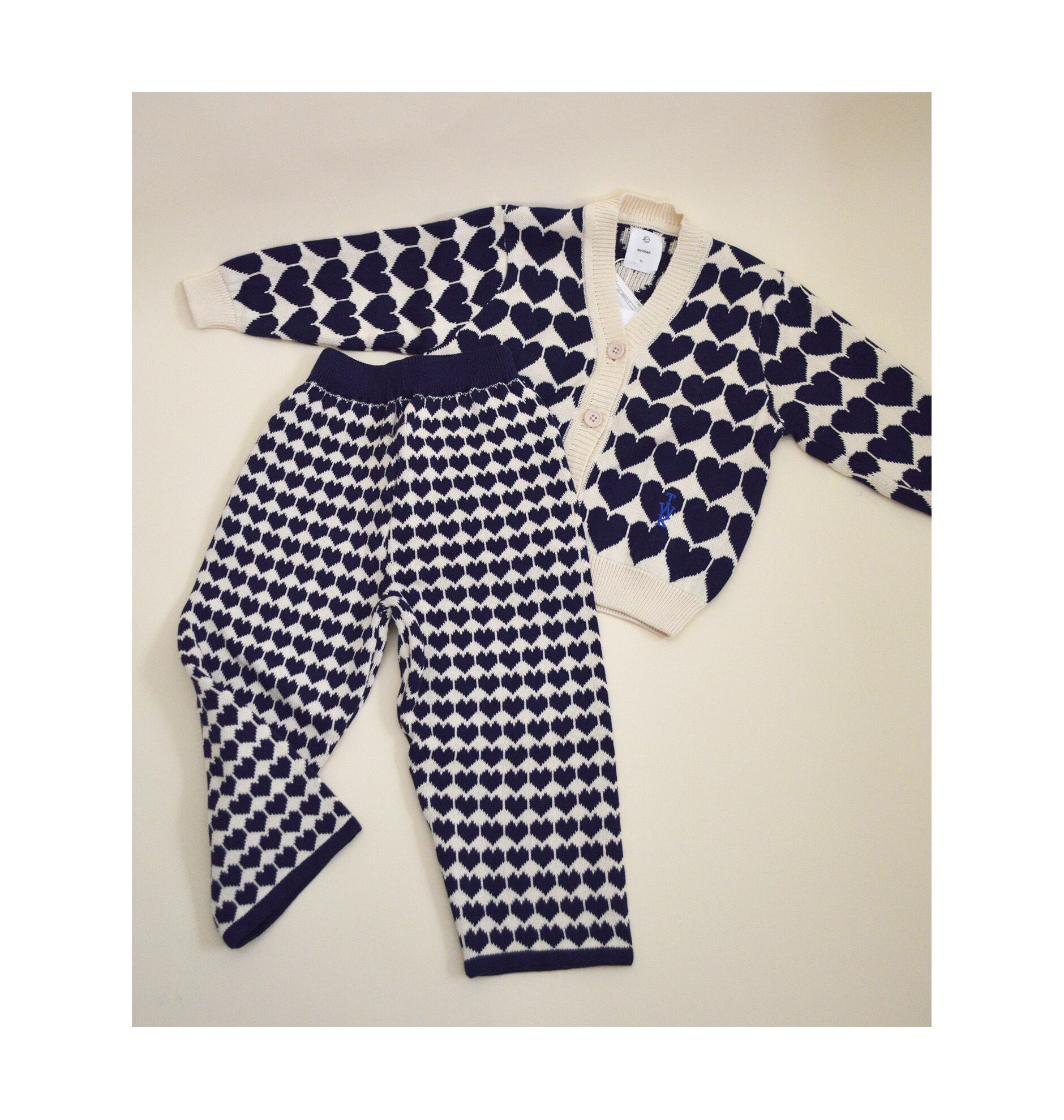 100%オーガニックコットンのハート総柄ニットパンツ。