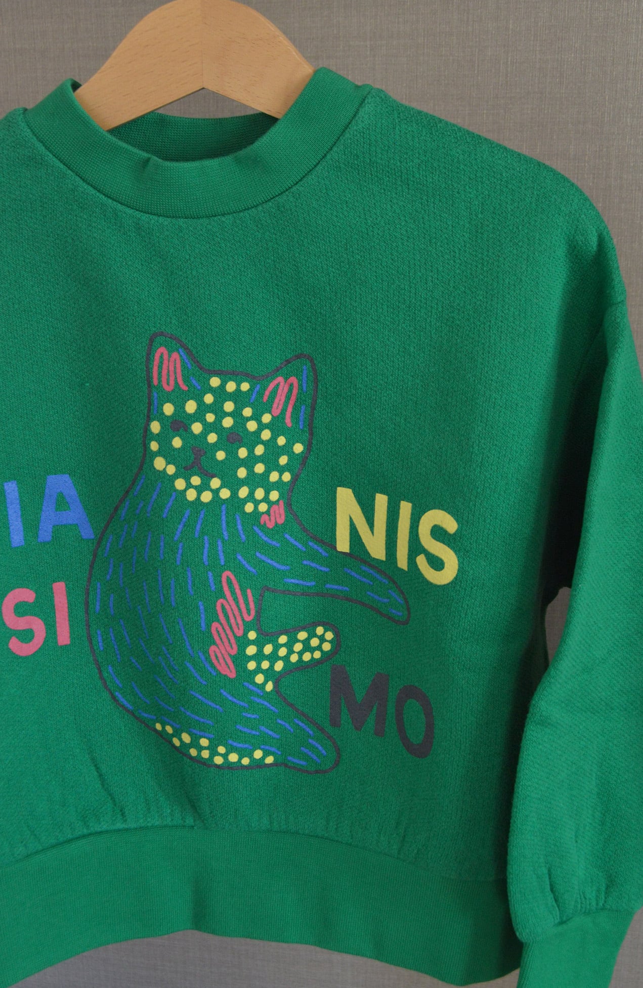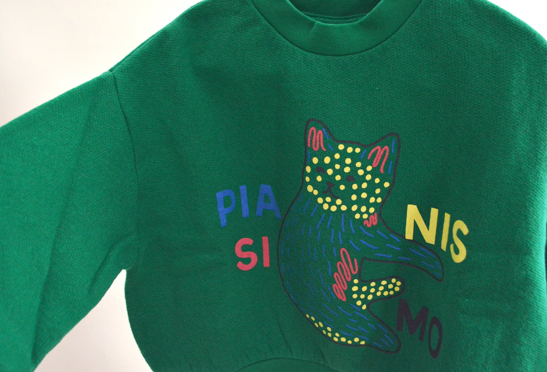 ポップな猫ちゃんプリントとビビットなグリーンが秋冬シーズンを明るくしてくれます。