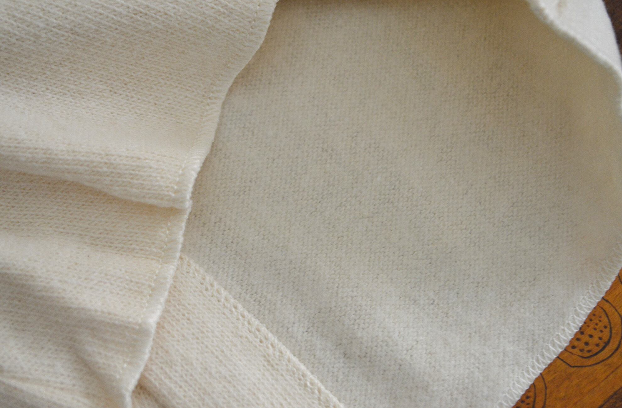 ニットのようなふわりとした暖かな生地で、特に内側はモヘアっぽい質感があります。