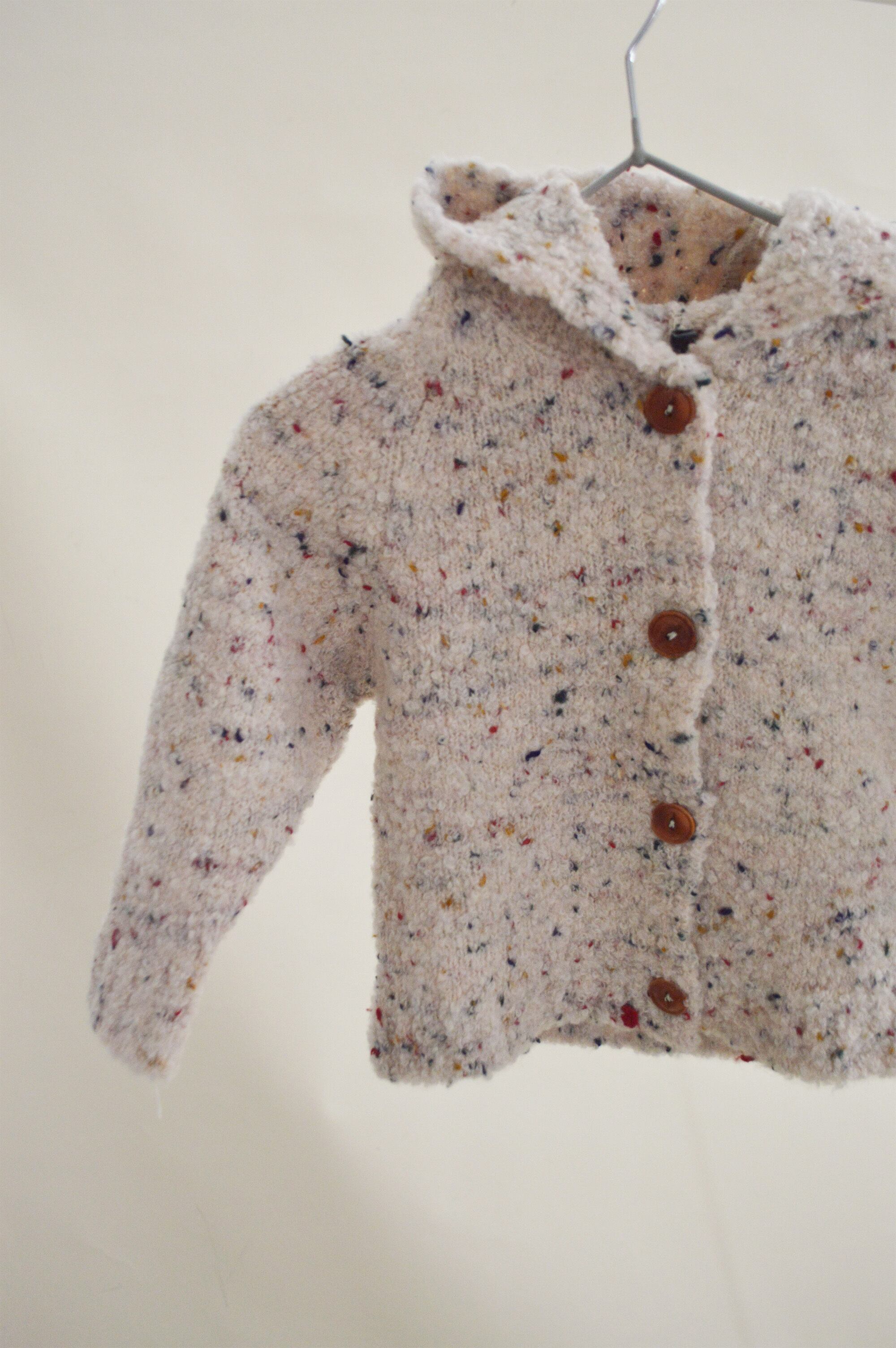 まだらに散らばったカラフル糸が可愛く、ジェンダーレスなデザインです。