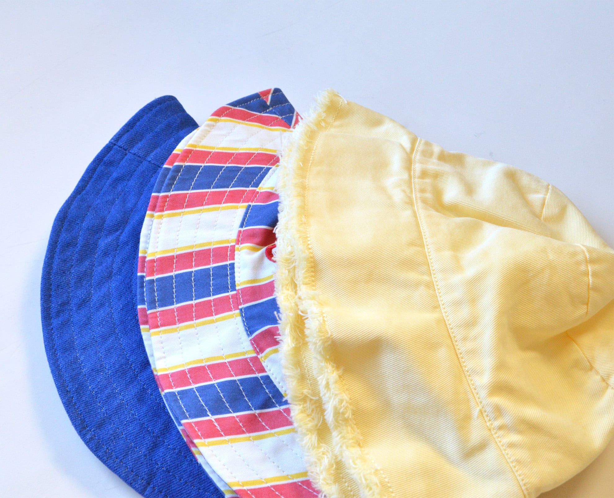 ブルーデニムのチューリップハット。