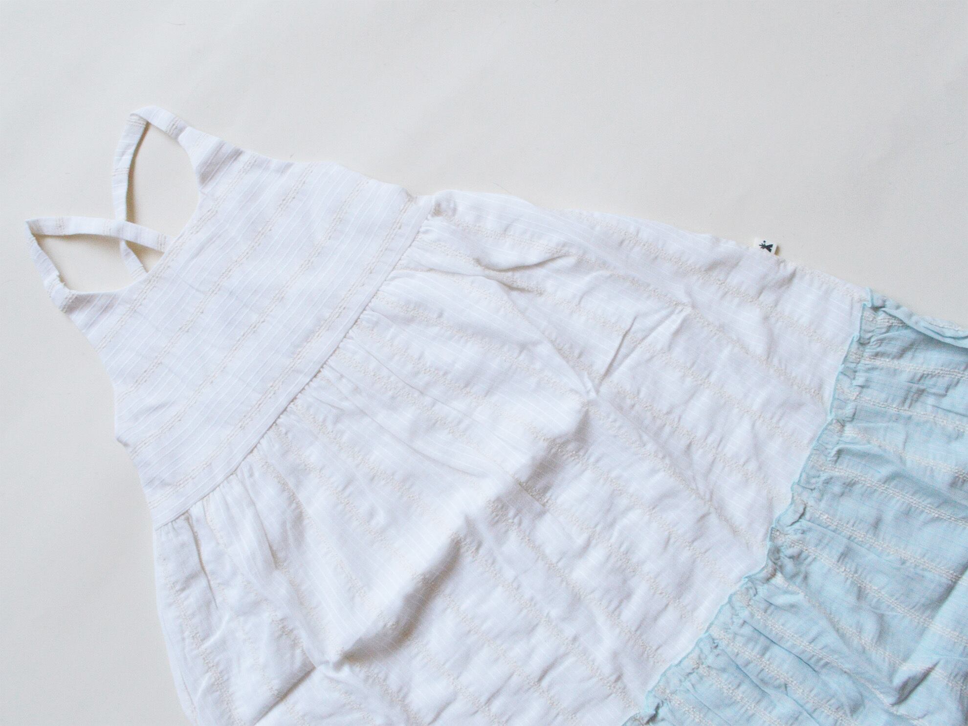 ー生地の切り替え部分が見えている。