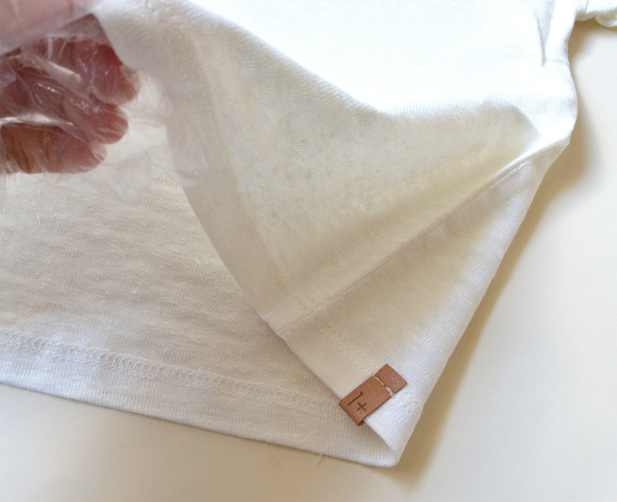 ー生地の切り替え部分が見えている。