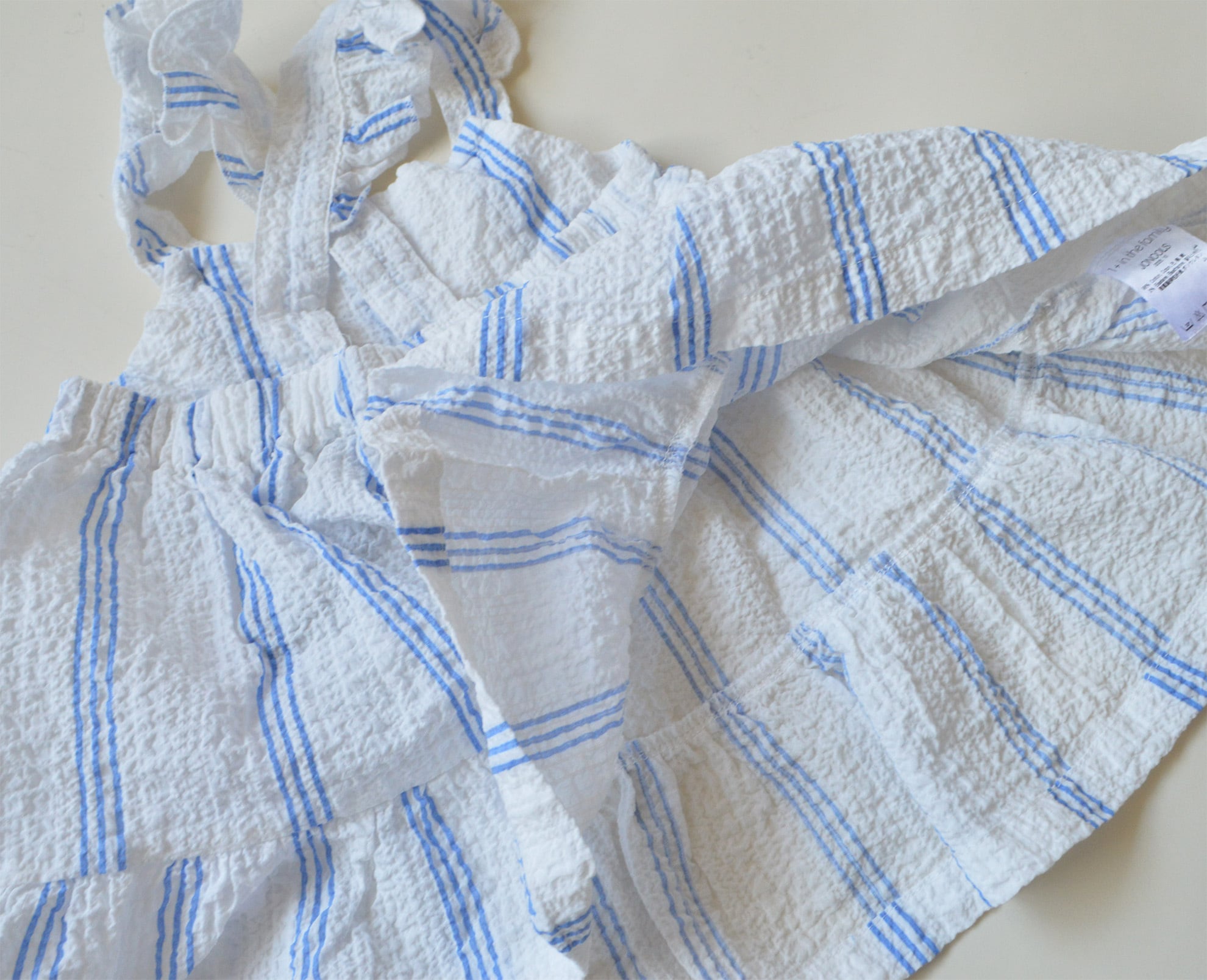 凹凸のあるコットン生地(サッカー調の生地)のワンピース。