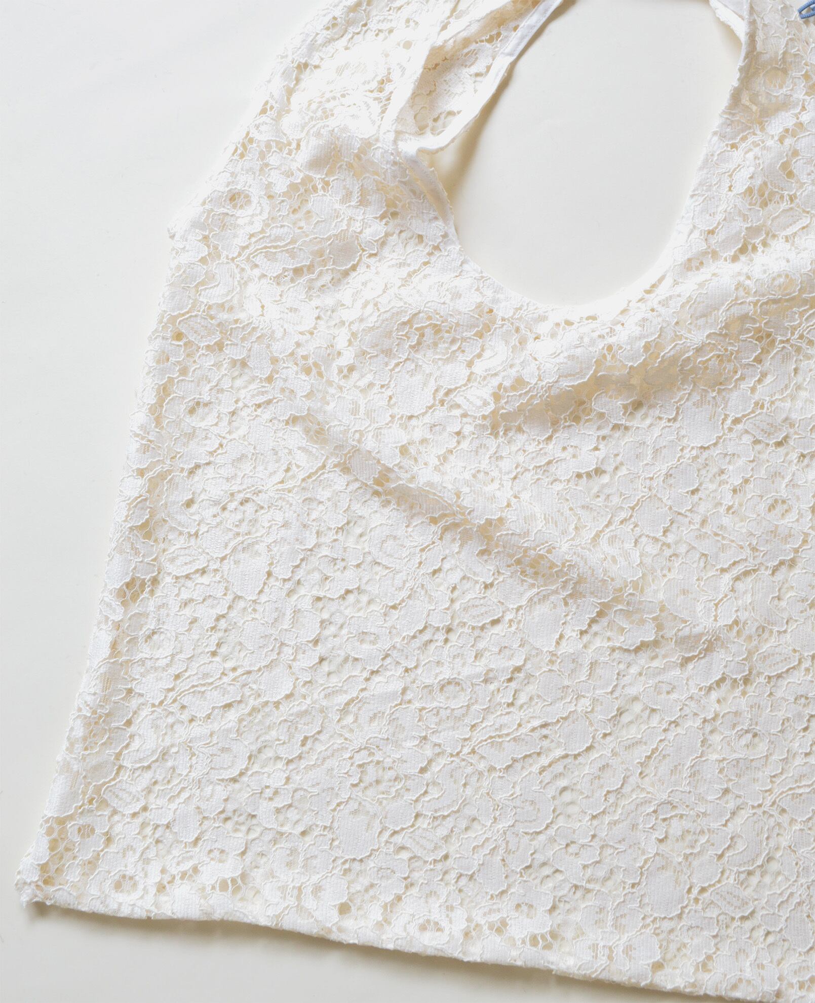 レースのトートバック。裏地はなく、軽く折り畳めます。