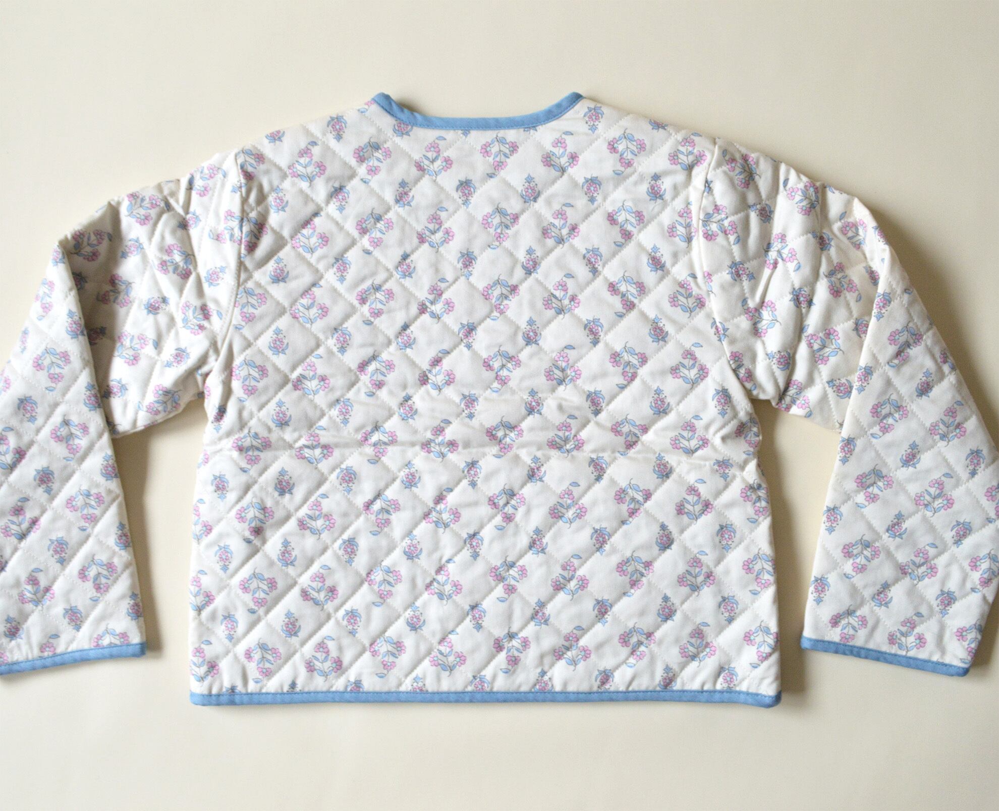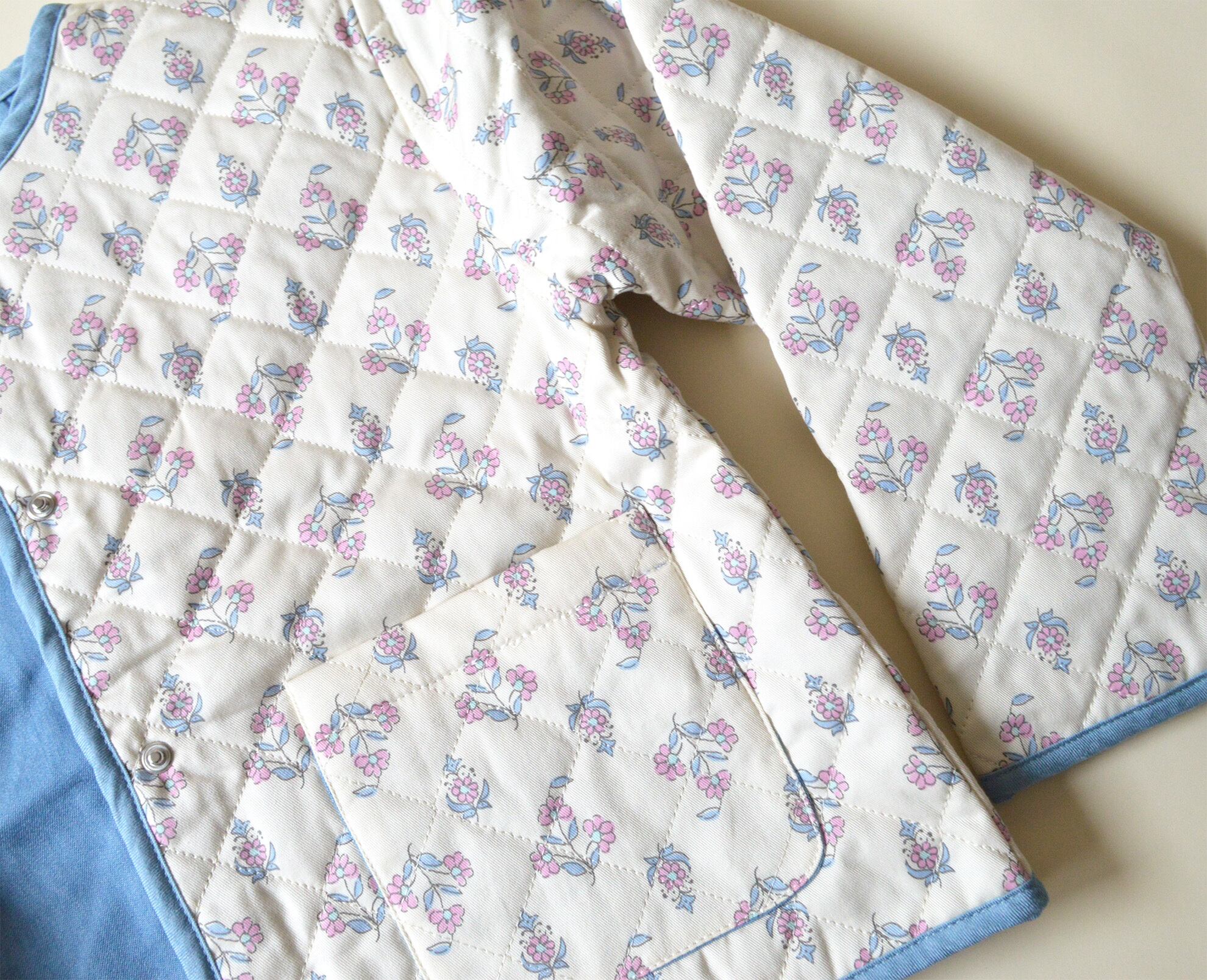 柔らかく軽い、コットン100%のキルティングジャケット。内側には柔らかいシャンブレー生地が使われています。ウインドブレーカーに切り替えるには肌寒い、でももう厚手のコートには気候も気分も合わないなという時に最適のジャケットです。