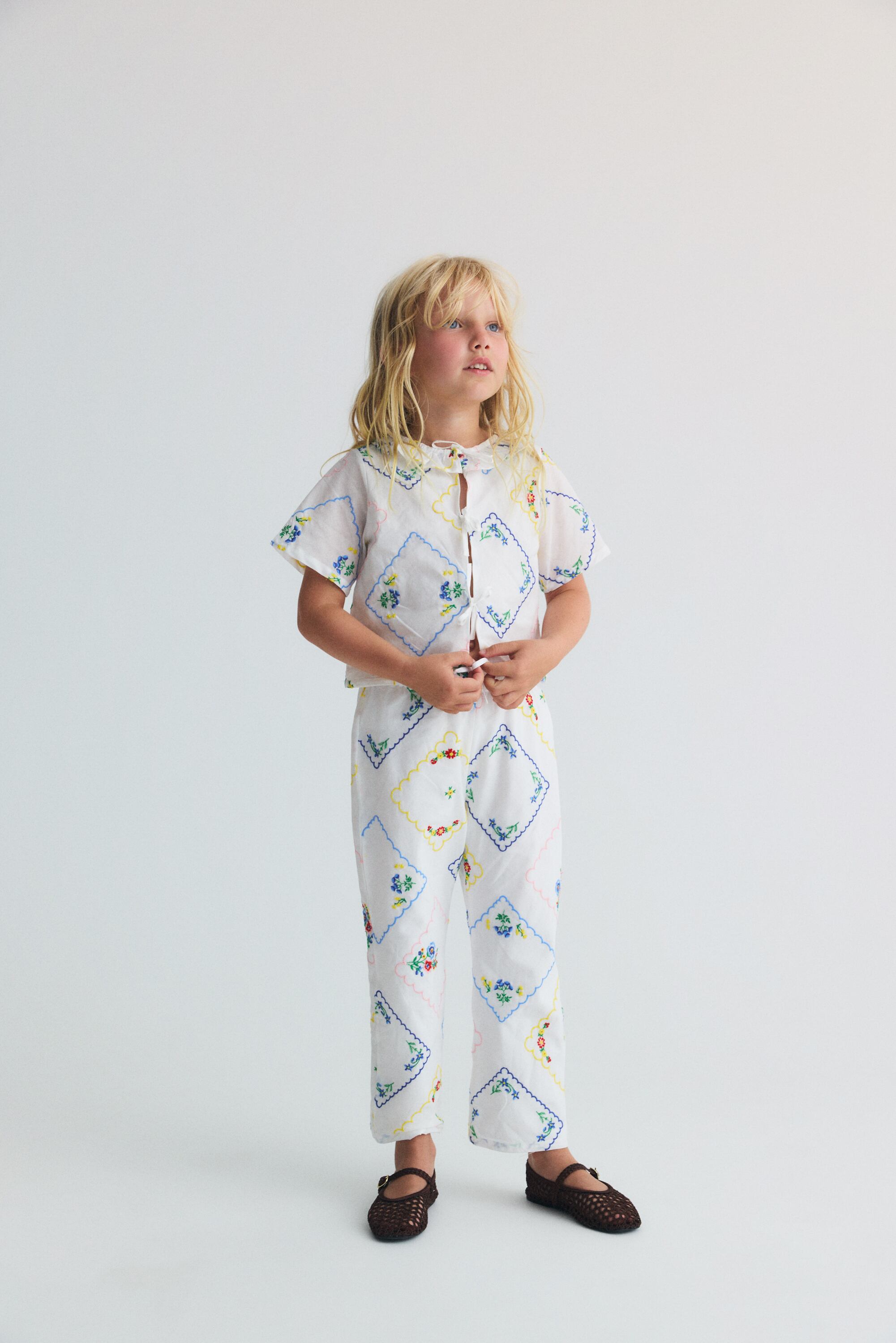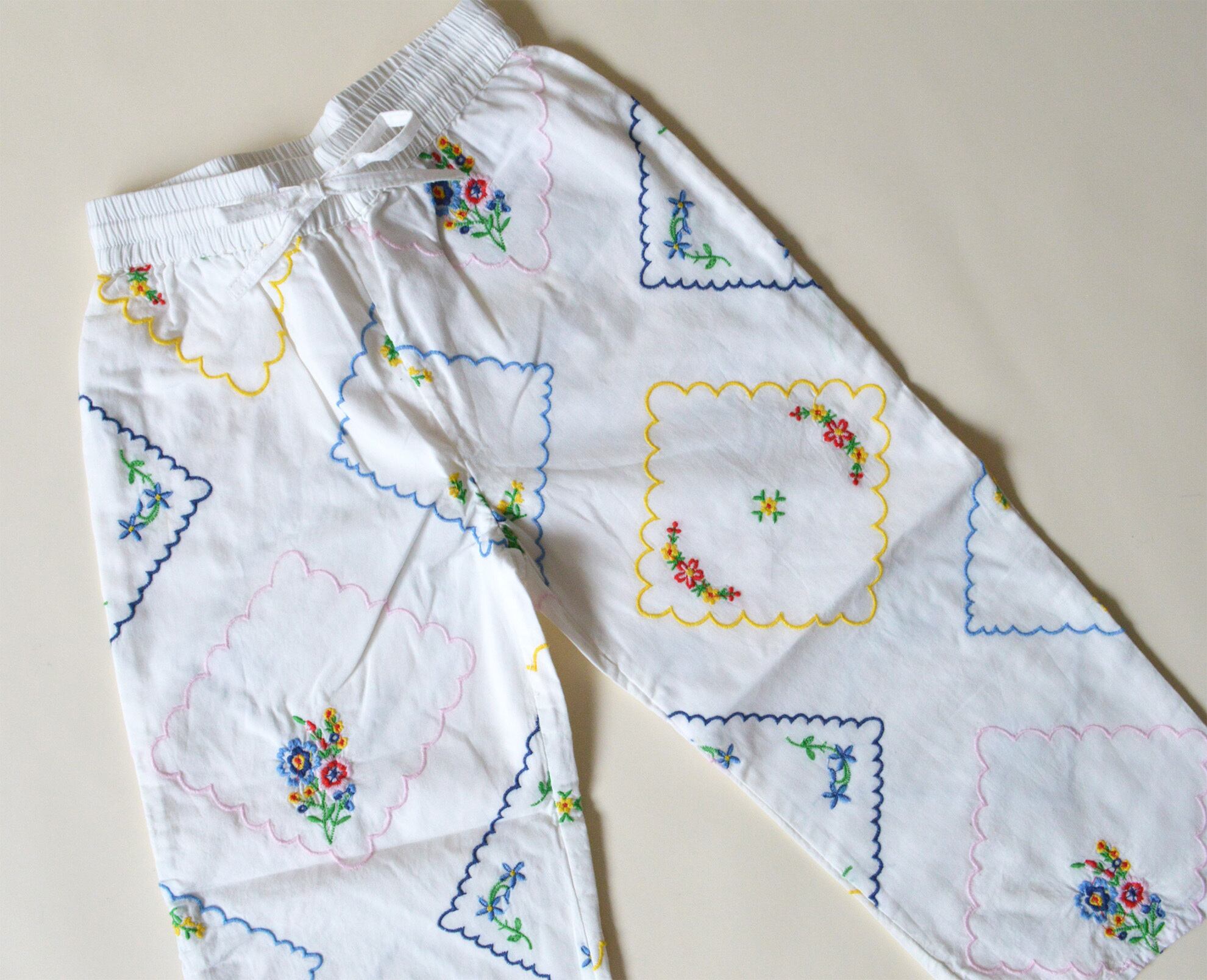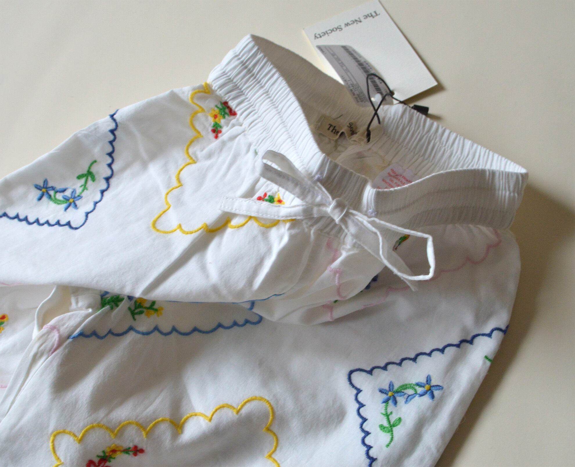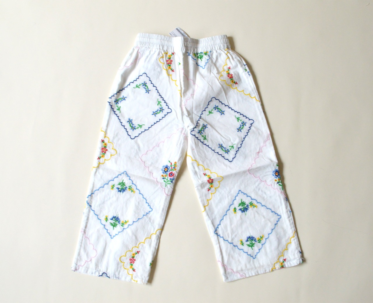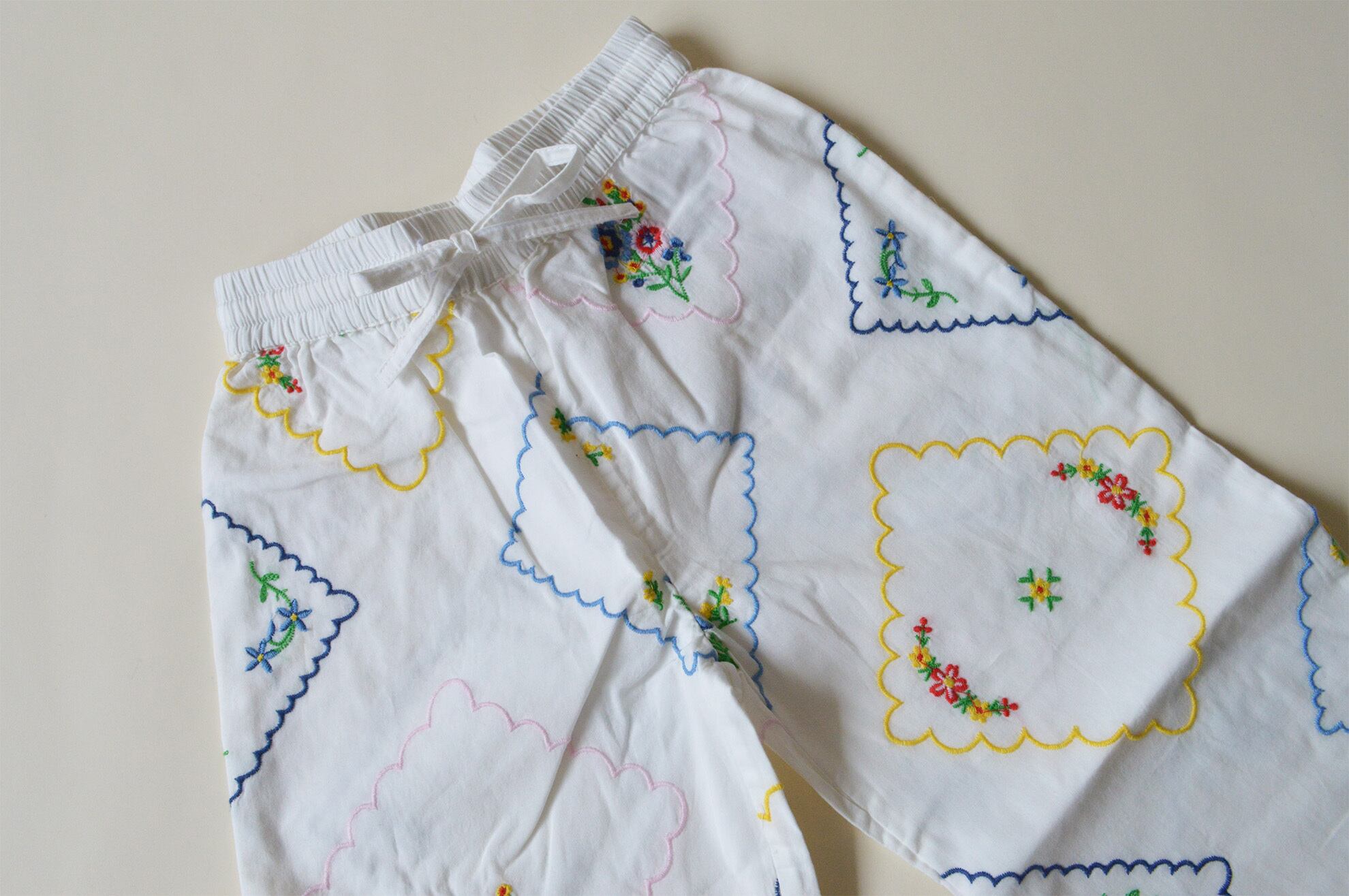 柔らかく軽いコットン100%の刺繍入りパンツ。