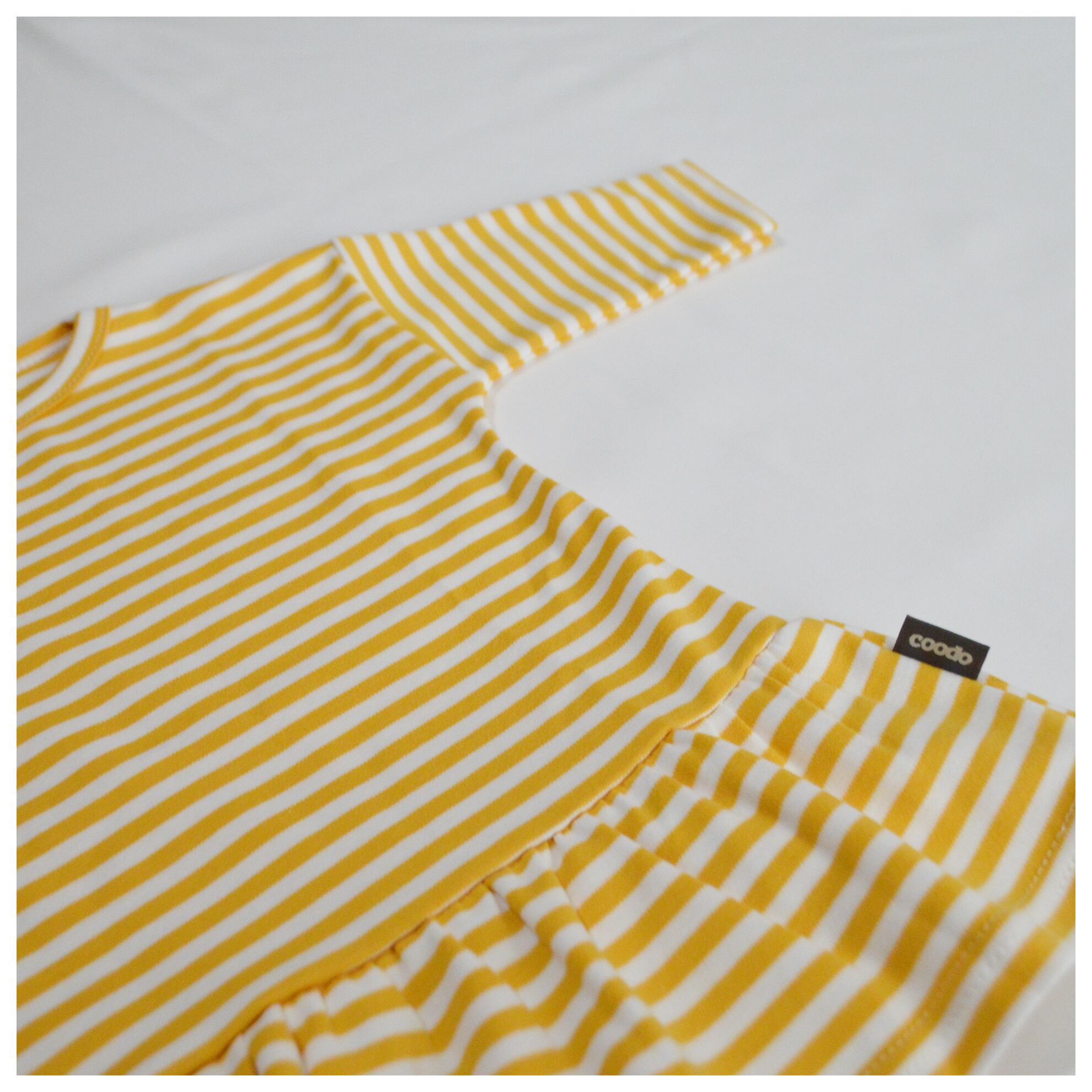 ・COODOでは、肌へのストレスを減らす為、洗濯表示を洋服の内側に縫い付けておりません。日本での販売にあたり簡易の縫い付けを行っておりますが、綺麗に取り外し可能な仕様になっております。