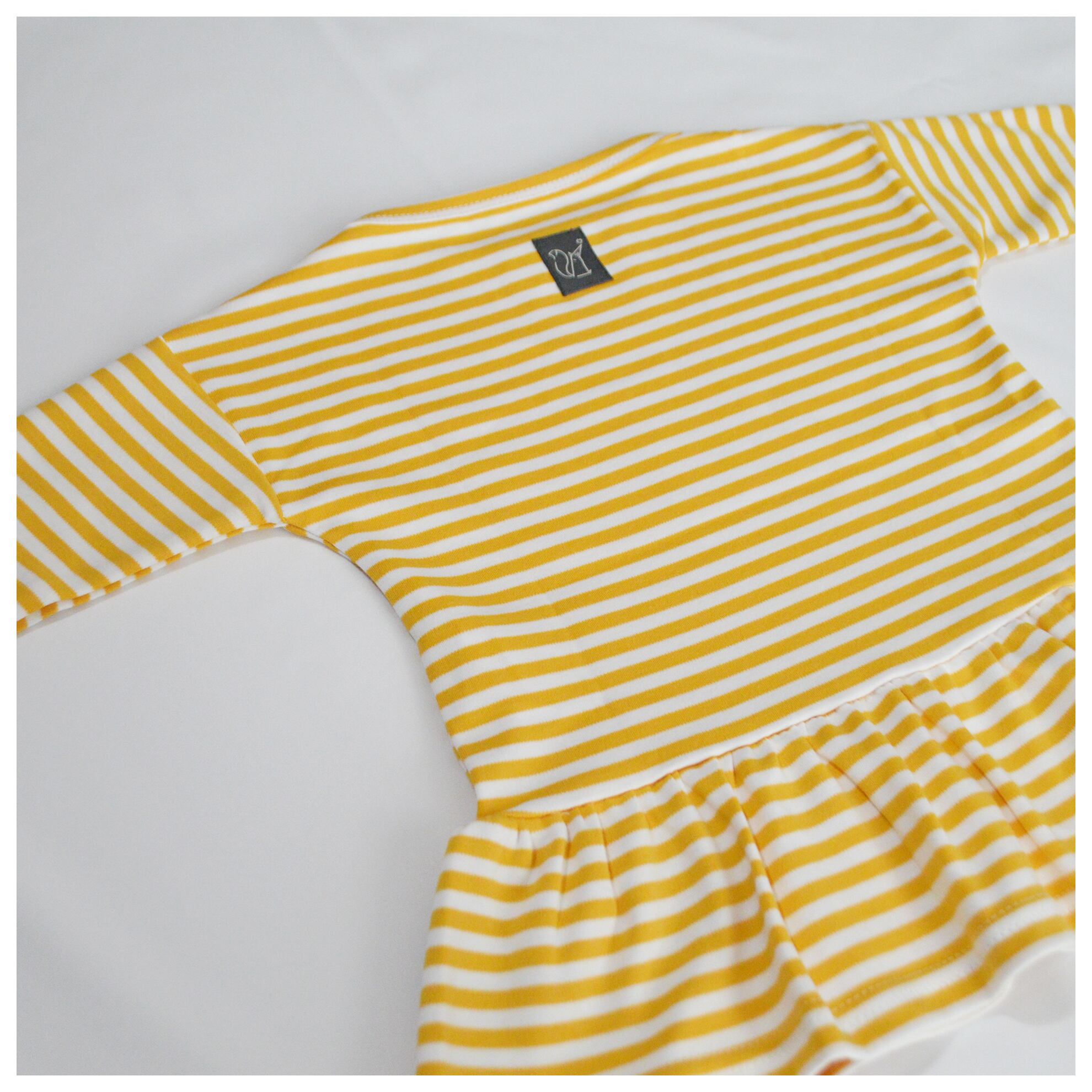 100%オーガニックコットンの布地が柔らかく、優しい着心地のワンピース。ボートネックで首周りが大きすぎて肩が落ちてしまうようなこともありません。サラッと1枚で着ても可愛らしく、タイツやレギンスと合わせて様々なスタイルを楽しめます。