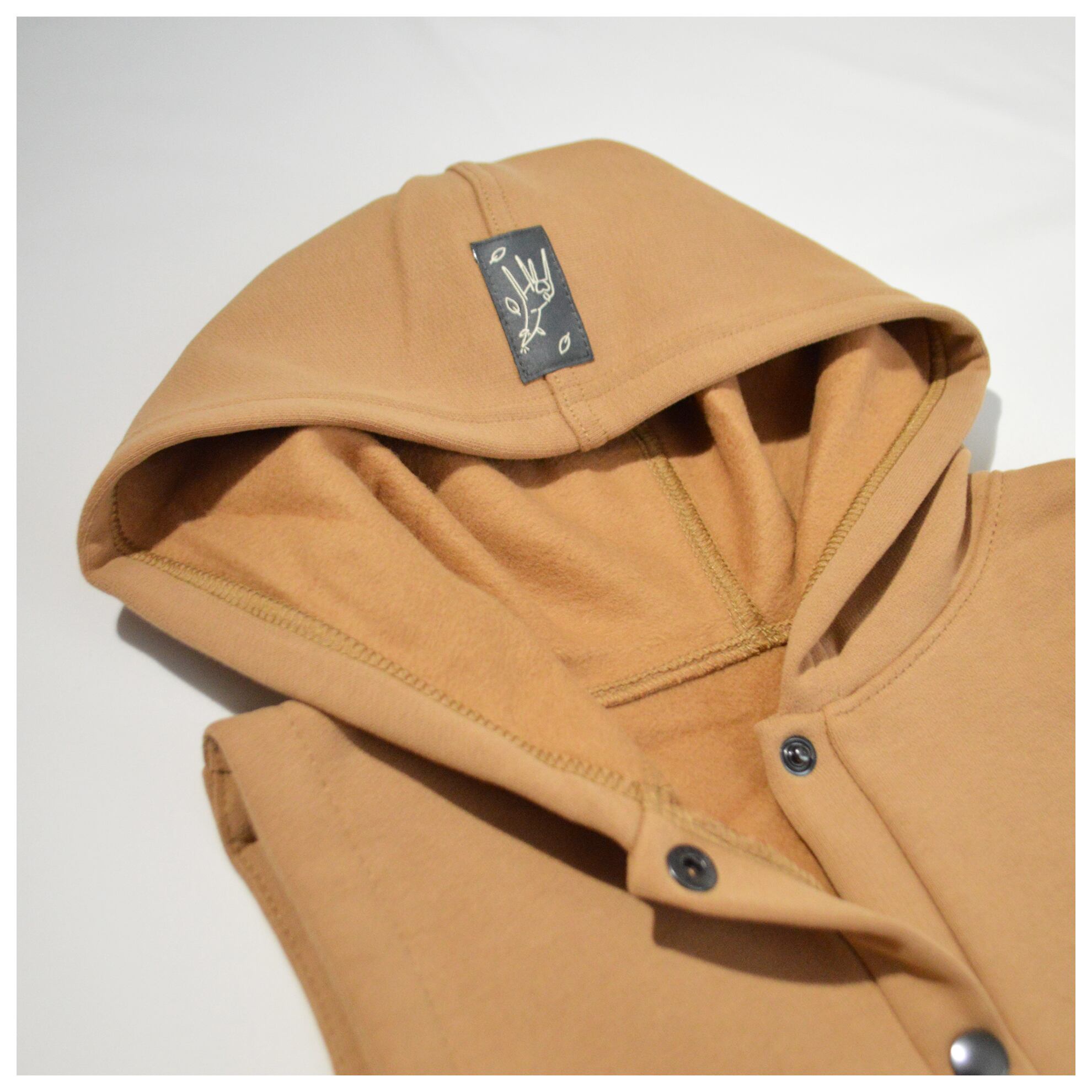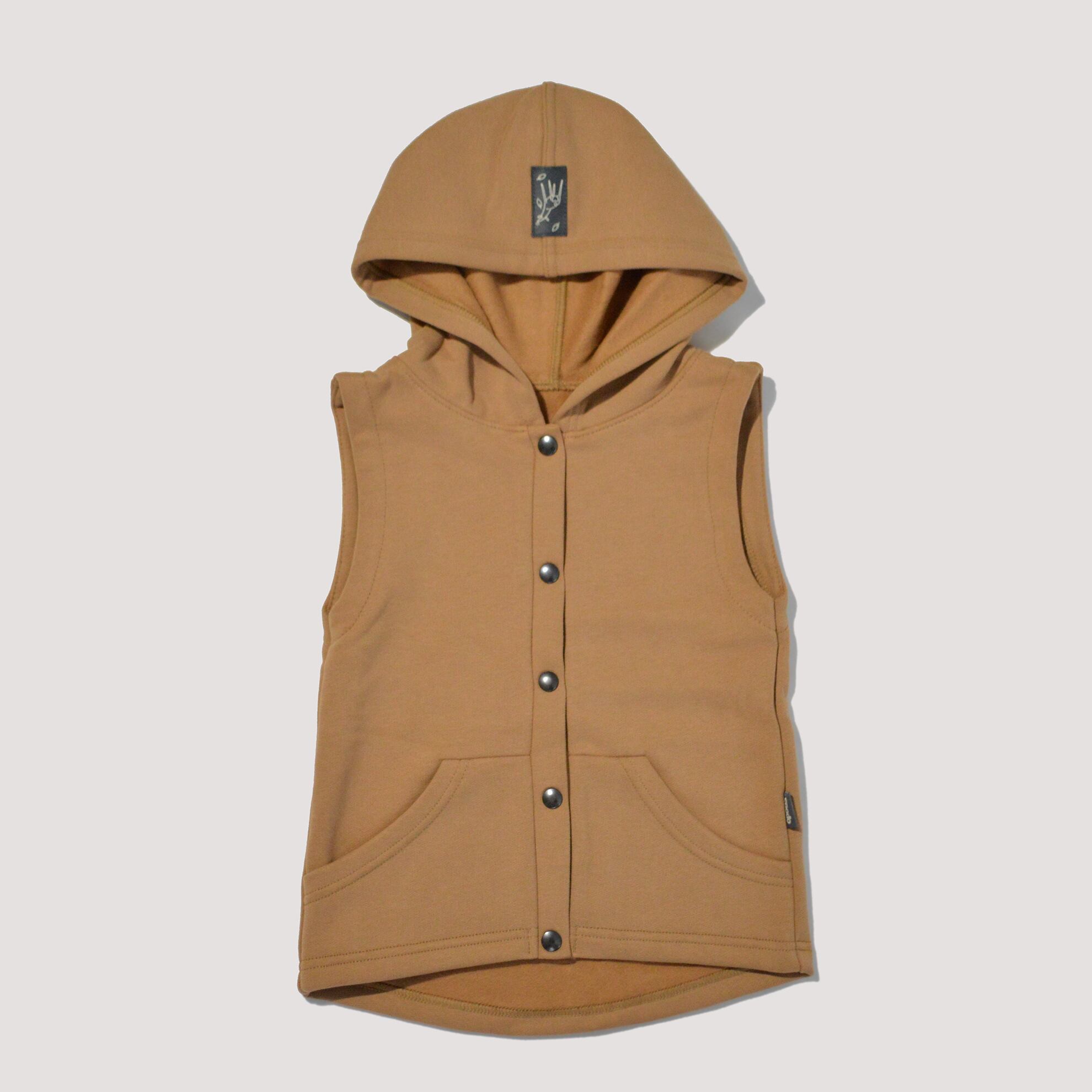 100%オーガニックコットンのスウェット・ジレ(ベスト)。内側はコットンフリースでふわふわ、柔らか。軽いので、着ていることを忘れて思い切り遊べます。