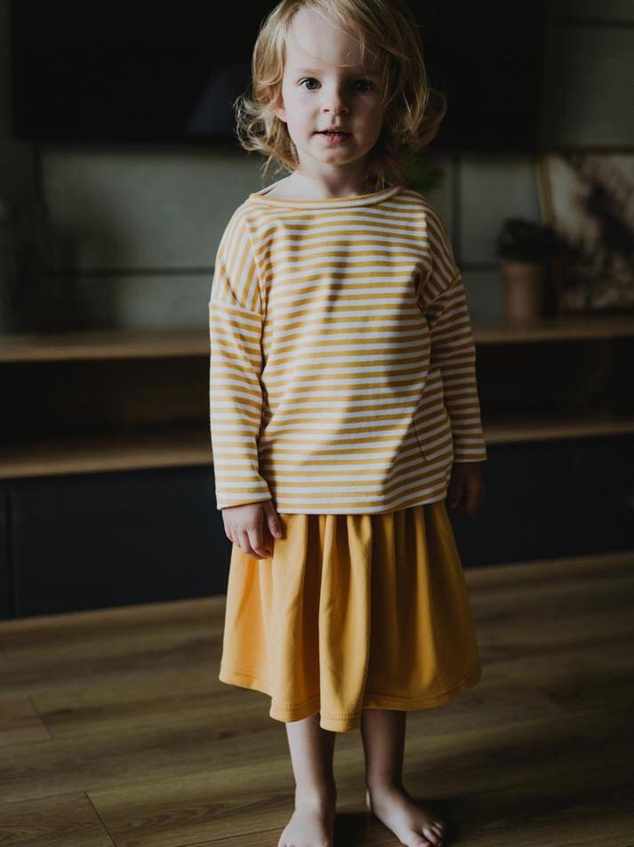100%オーガニックコットンの布地が柔らかく、優しい着心地のスカート。