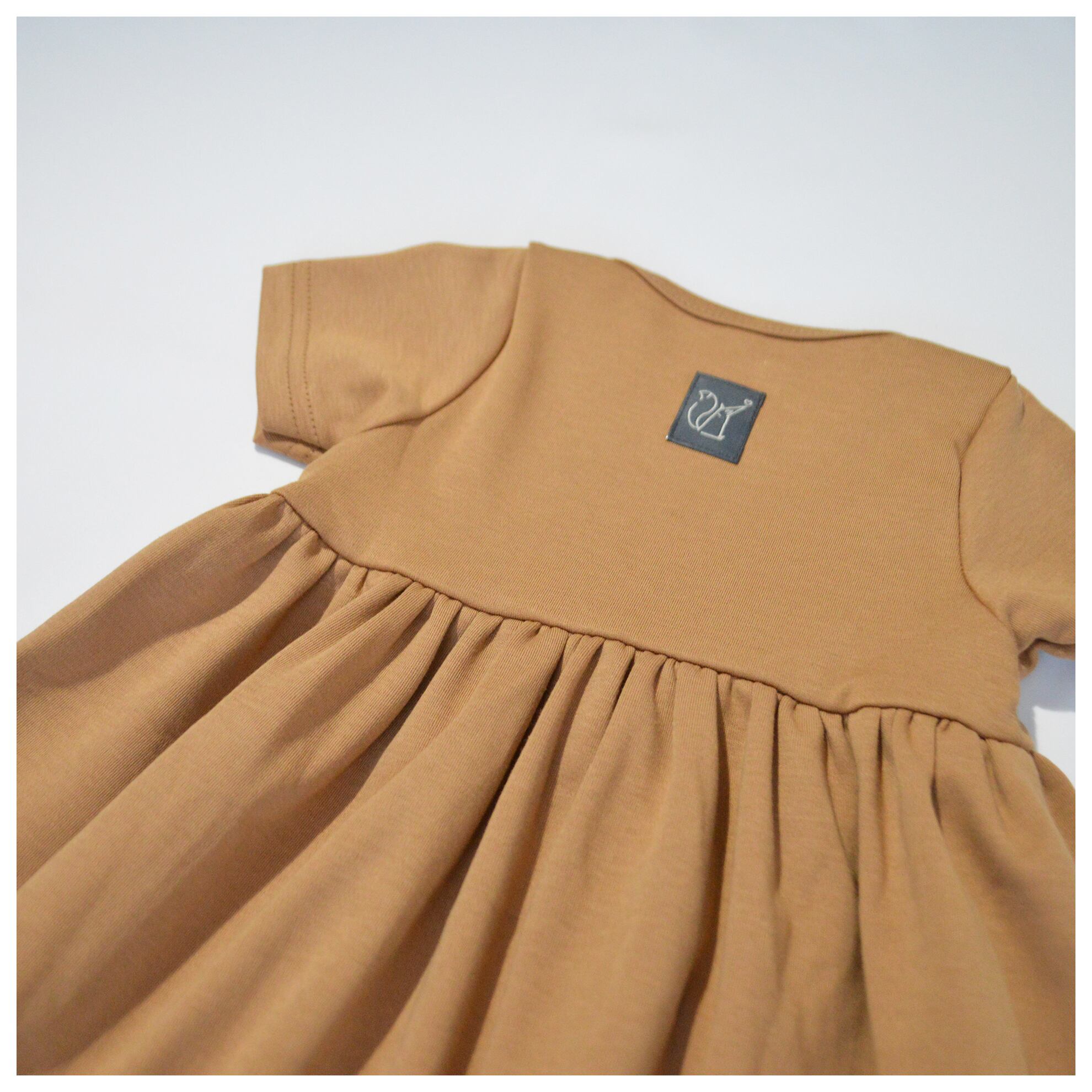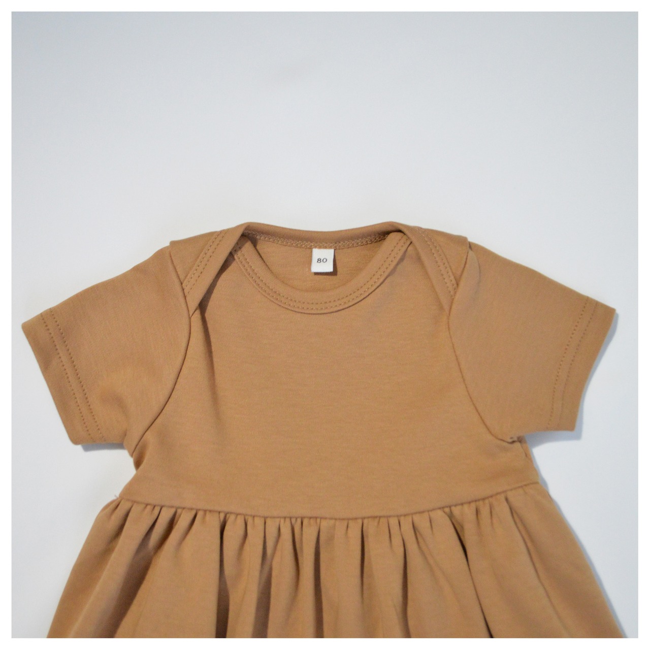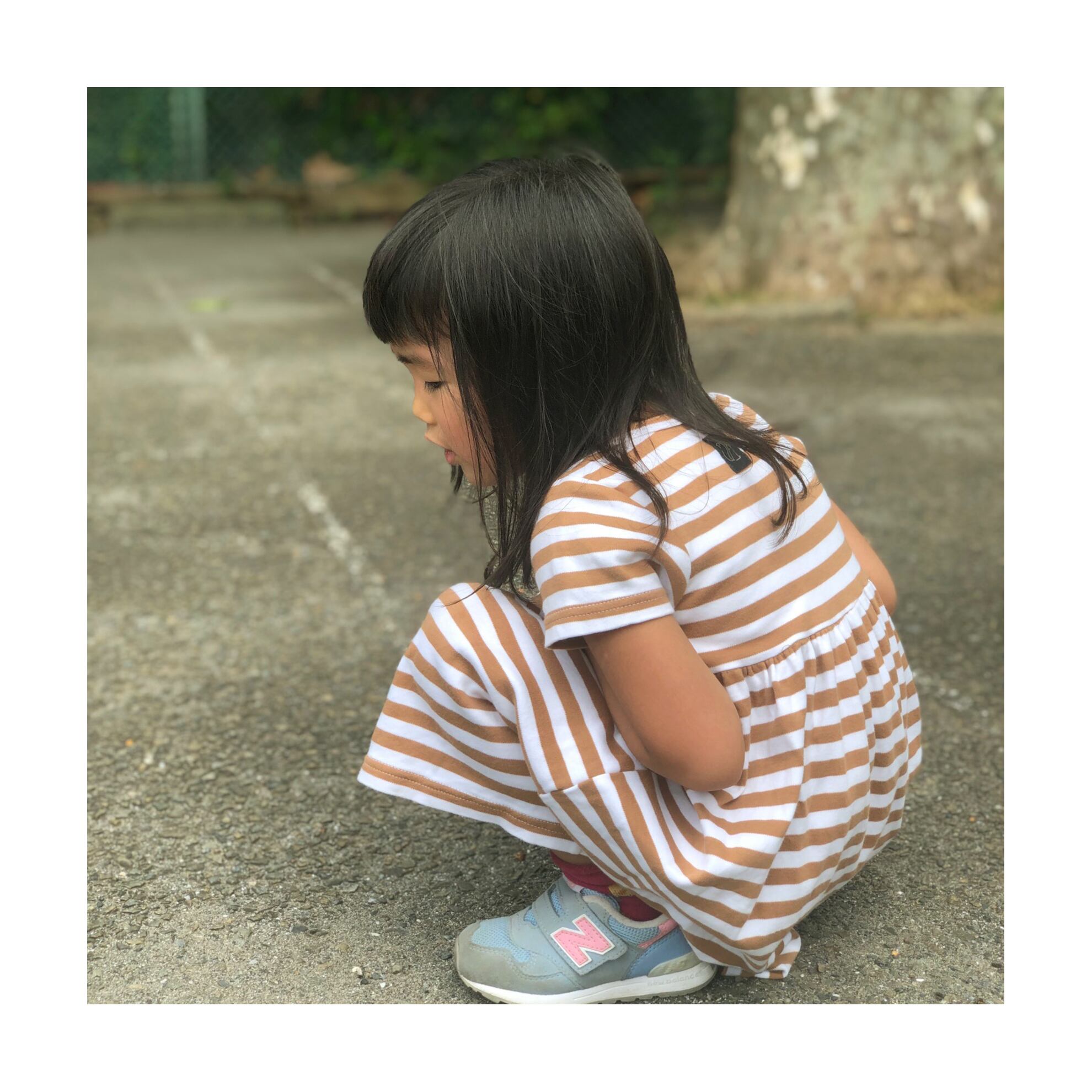 100%オーガニックコットンの布地が柔らかく、優しい着心地のワンピース。キッズ服には珍しい襟ぐりが大きく開くデザインで、着脱時のストレスが少なく、首周りが大きすぎて肩が落ちてしまうようなこともありません。