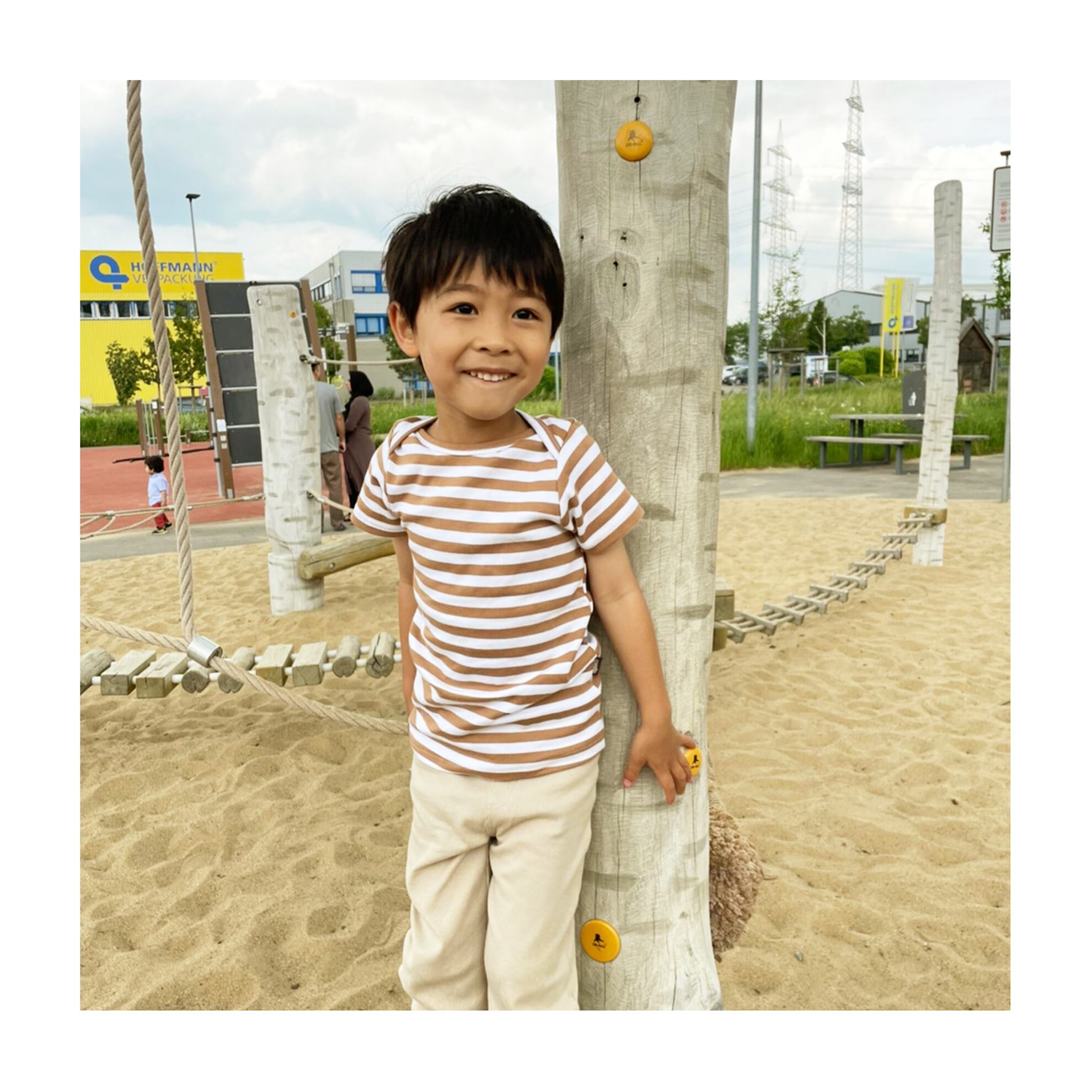 100%オーガニックコットンの布地が柔らかく、優しい着心地のTシャツです。キッズ服には珍しい襟ぐりが大きく開くデザインで、着脱時のストレスが少なく、首周りが大きすぎてTシャツの肩が落ちてしまうようなこともありません。