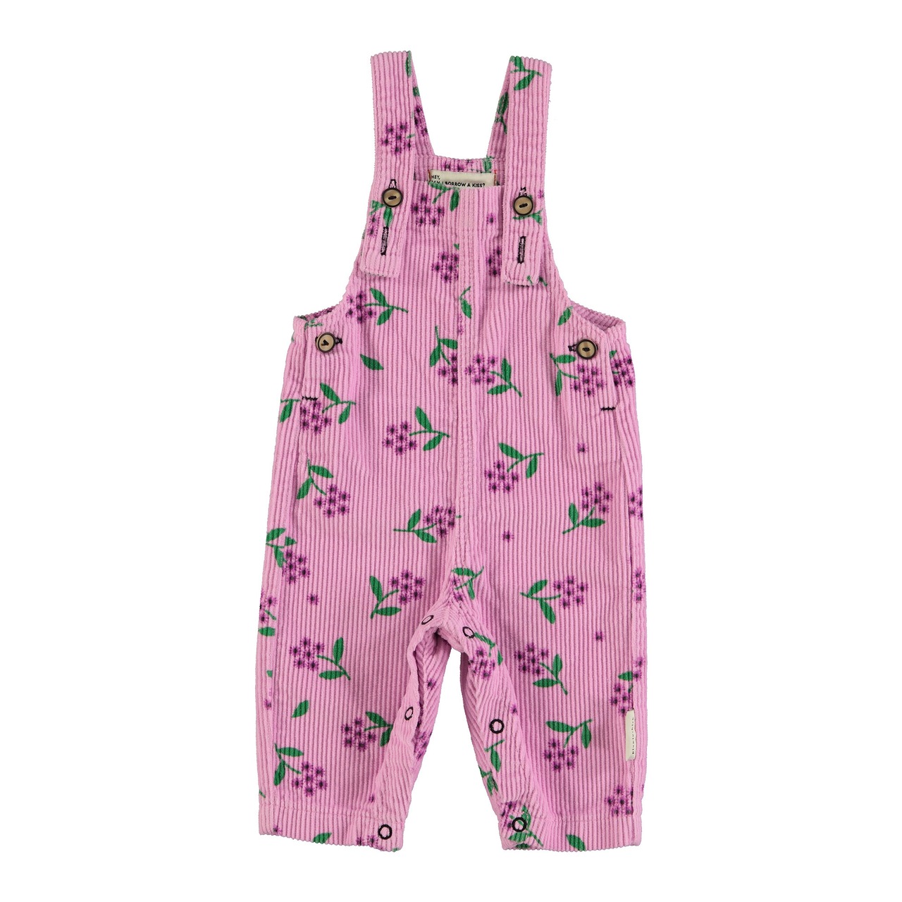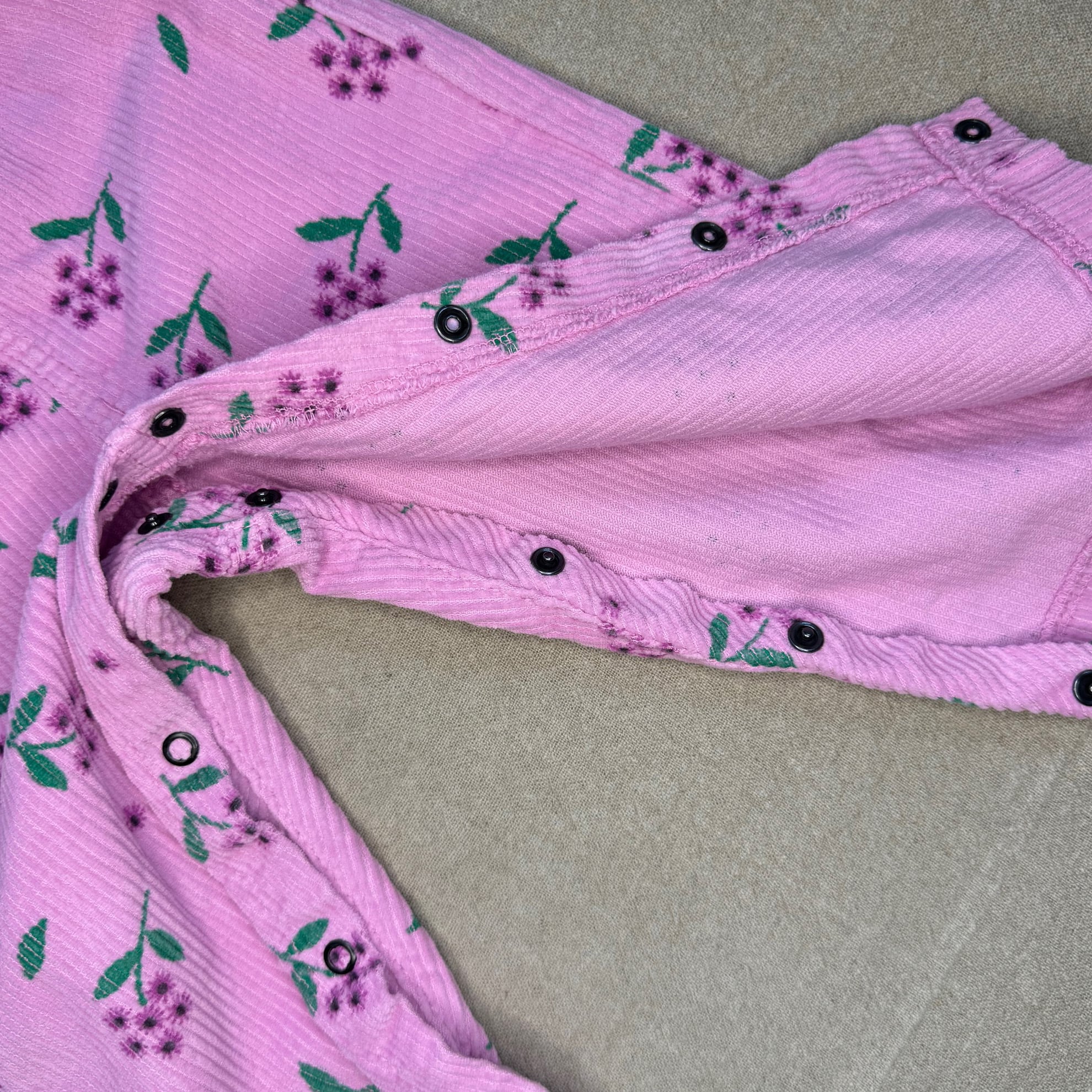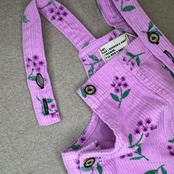 ピンク生地にピンクのお花プリントのコーデュロイ・ダンガリー。