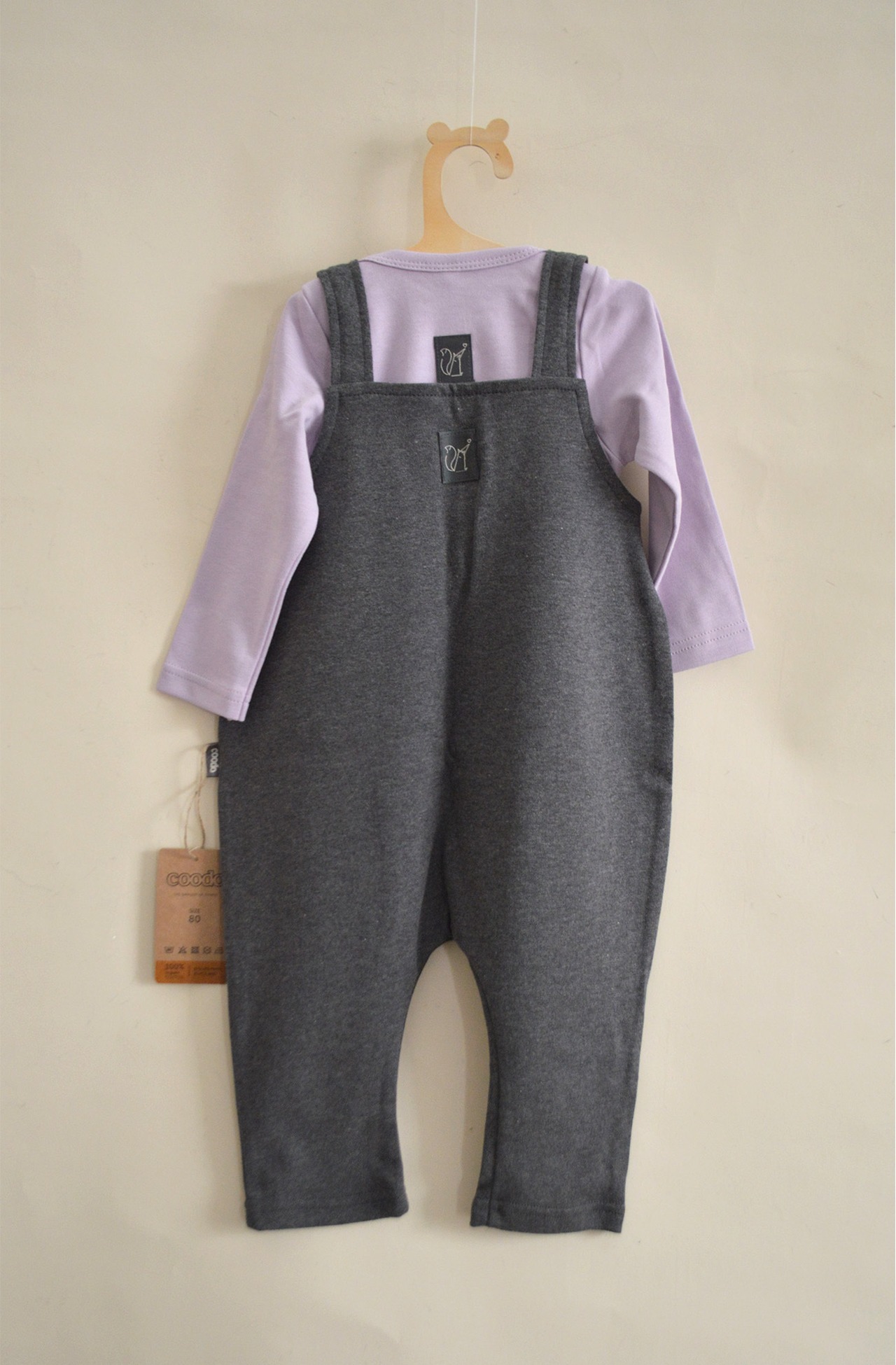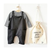 100%オーガニックコットンの生地が柔らかく、優しい着心地のオーバーオール。